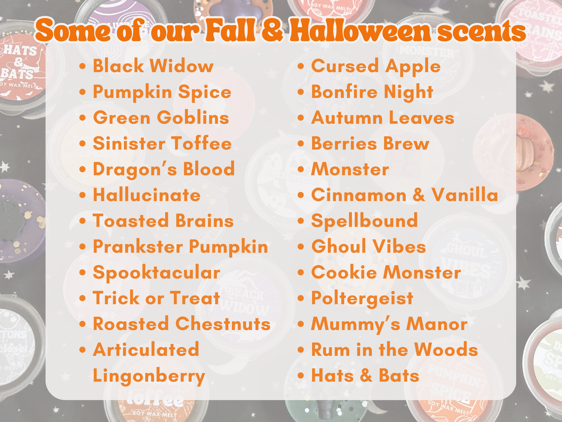 👻 5 or 10 highly scented soy wax melts in surprise autumn & Halloween-inspired scents