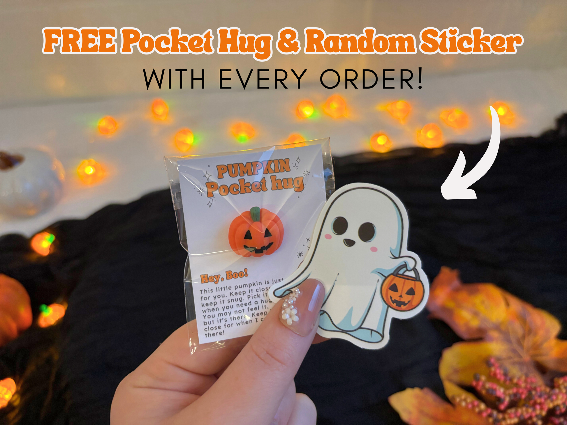 🎃 Free pumpkin pocket hug + Halloween sticker included with every order!